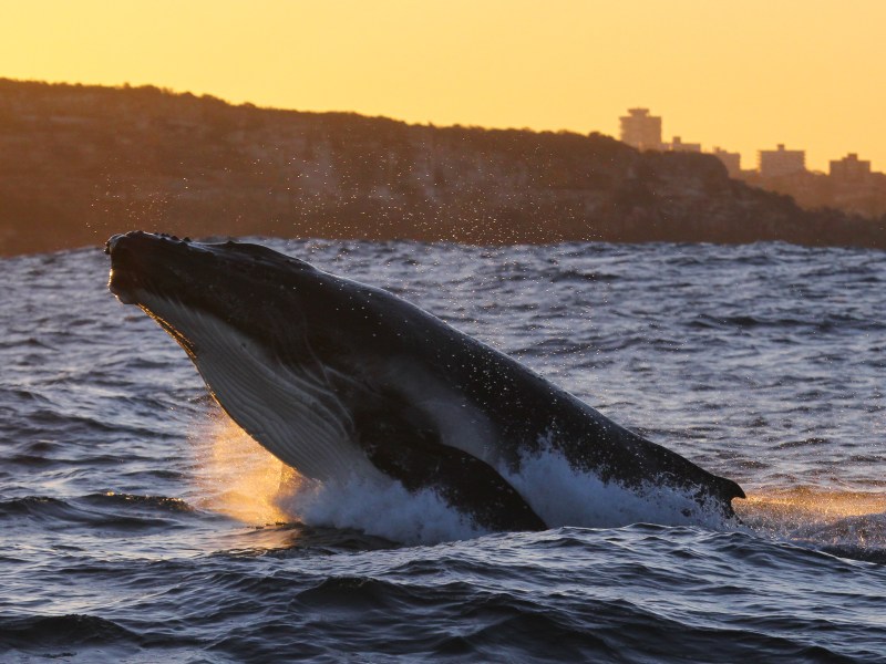 Experience the magic of whales at sunset.